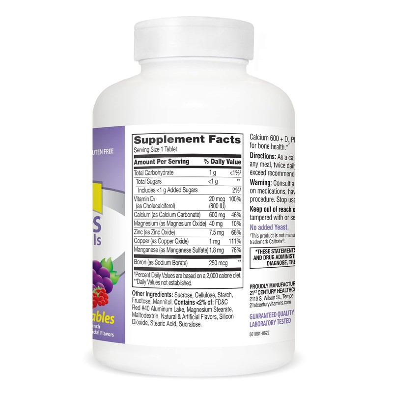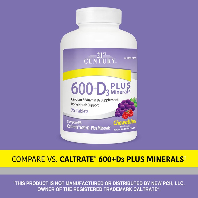 21st Century Vitamins Calcium 600 mg + D Chewables, Fruit Punch, 75 ct