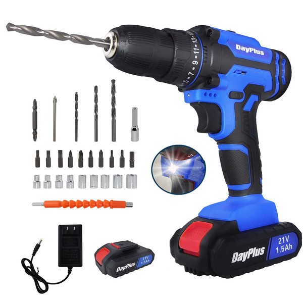 - 【What's Included】 You will get: 1 x 21V Cordless Power Drill, 1 x 1.5 AH Battery, 1 x Fast Charger, 26 x Accessory Set (Drill & Screwdriver Bits, Sockets), 1 x User Manual. If you have any question, please feel free to contact us.