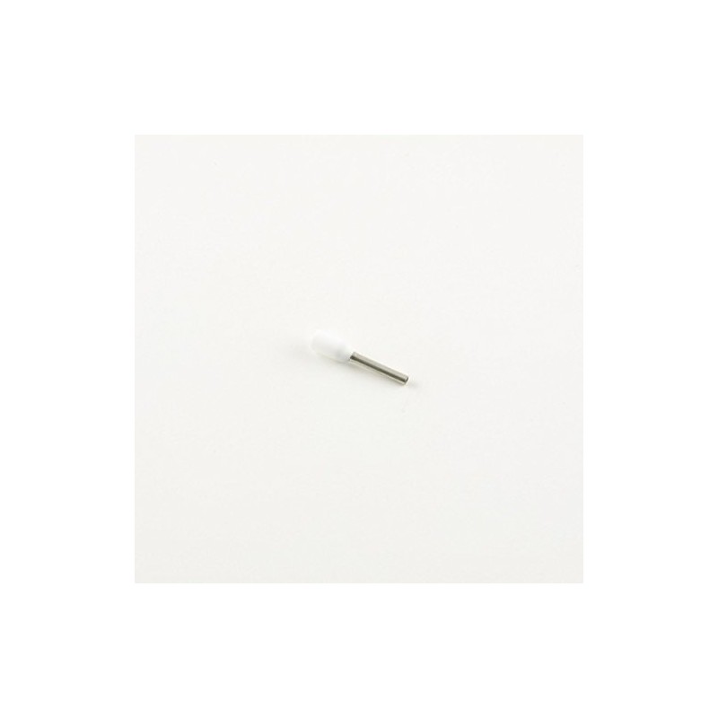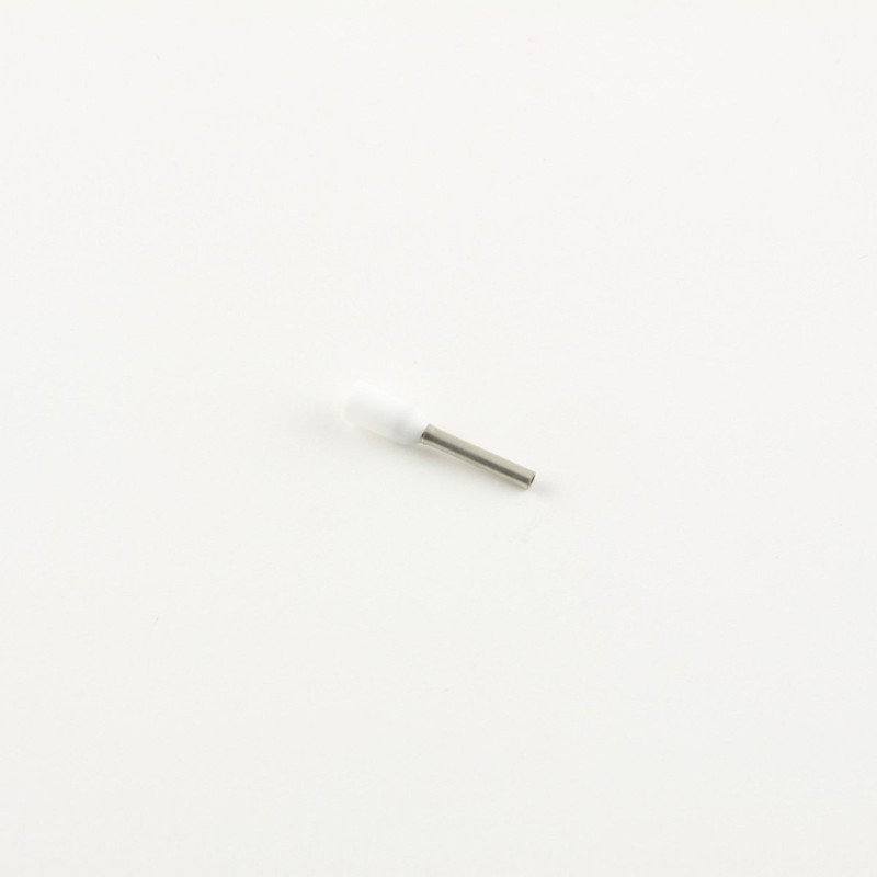 22 gauge white insulated ferrules, 0.31" (8mm) pin length. Use these ferrules to prevent wire ends from fraying or breaking. The tin-plated copper tubes make for an easy mating point with terminal blocks, or under set screws and pressure plates. Nylon insulation provides easily identifiable color coding. Ferrules also hold up to vibration, can be reconnected multiple times without damage and are a stronger mechanical connections than ring or fork terminals.