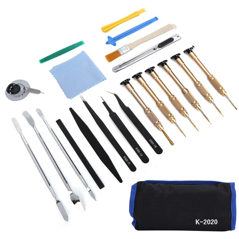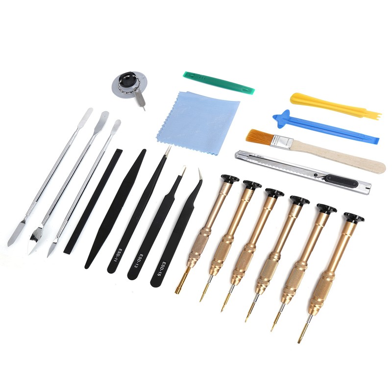 1、One set including 22 pieces, enough for device repair, with various tools, easy to maintain. 2、Suitable for repair mobile phones, computers, watches and other electronic products. 3、Made of high‑quality metal and plastic material, strong, durable, and long service life. 4、Small in size and light weight, easy to carry and store to everywhere, simple to operate. 5、The Repair kit including screwdriver, tweezer, knife, brush, pry bars, suction cup and eject pin.