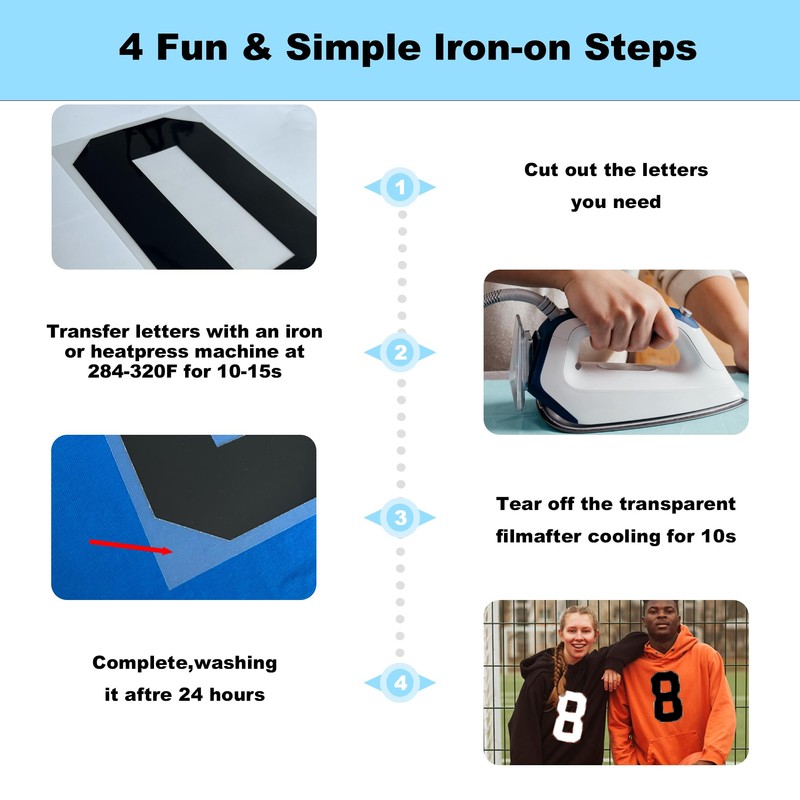 - It's Easy to Use: you can print these heat transfer number onto your clothes, cut out the number you need, place them on the garment, and then press with a heat press or iron at a temperature of about 284-320 degrees Fahrenheit for approximately 10-15 seconds. Please note that the rough matte surface of the product is the backside, while the front is smooth.
