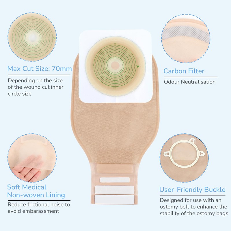 - REUSEABLE OSTOMY BAGS: Two-piece system, the buckle ring is the easy to attach the pouch with the skin barrier. You can easily change the colostomy bag you are using without removing the skin barrier.