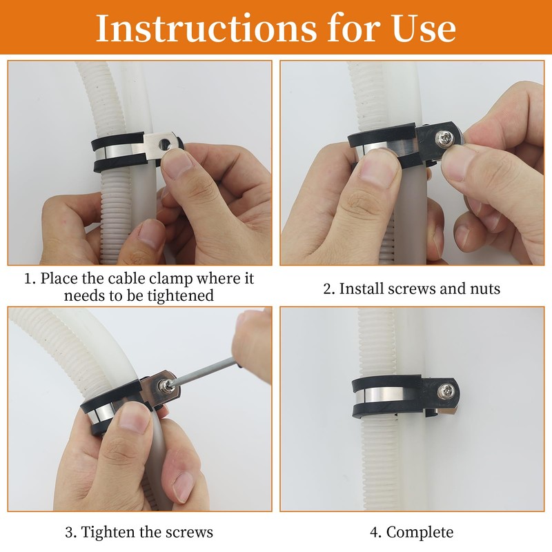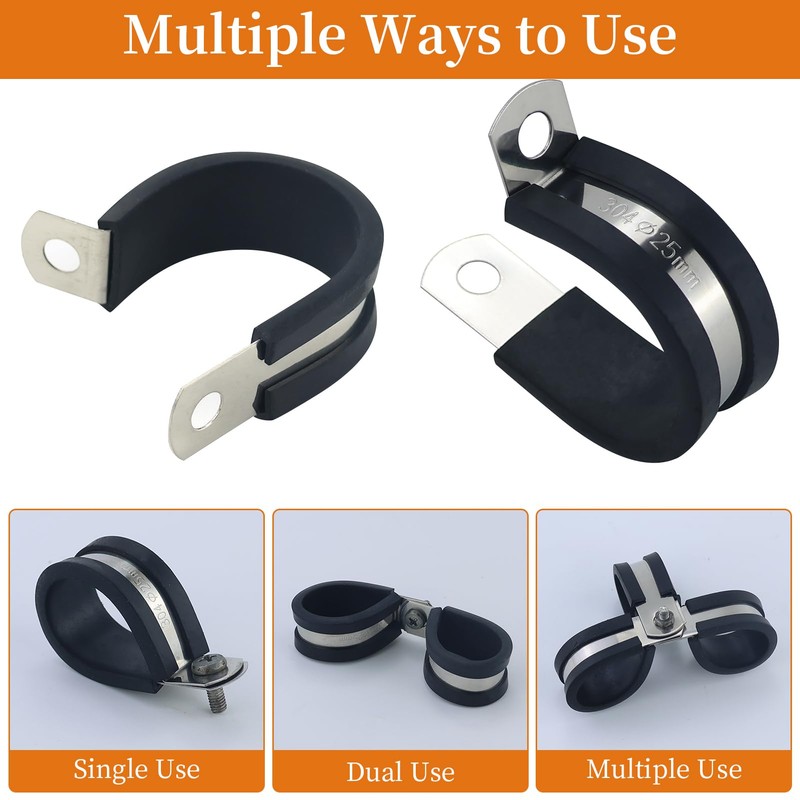 • [Innovative Design] Featuring An Innovative R-Shaped Structure, 25mm Hose Clips Securely Fixes Pipes With Both Stability And Strength, Maintaining A Rigid Form Without Deformation. Coupled With Rubber Cushioning Clamps, It Gently Cradles Hoses And Cables, Preventing Scratches Or Damage, While Incorporating Shock Absorption And Noise Reduction Features For A Quieter Working Environment.