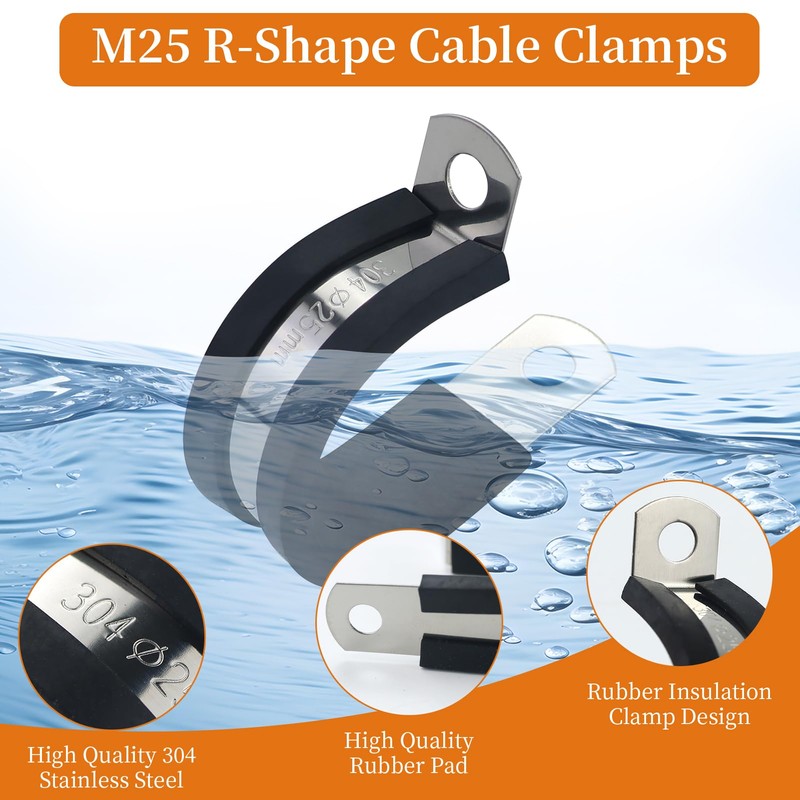 22 PCS M25 Stainless Steel Rubber Cushioned R Shape Clamps