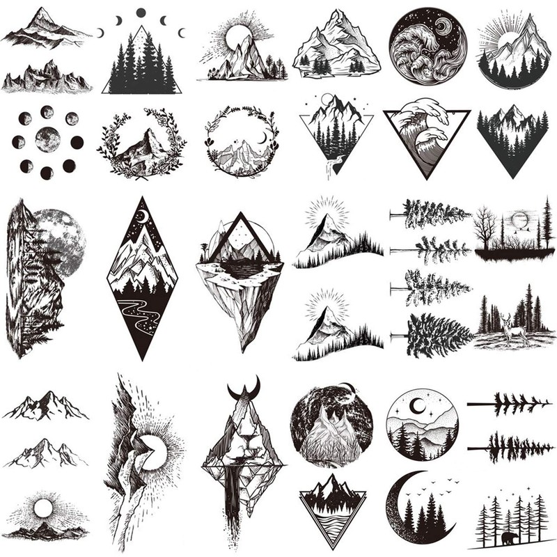 - MIX STYLE - 22 sheets Including art drawing waterproof fake black geometry sun moon tree triangle mountain sea wave tattoos custom, waterproof fake body art arm sketch tattoo stickers for you to change it at any time/any momen