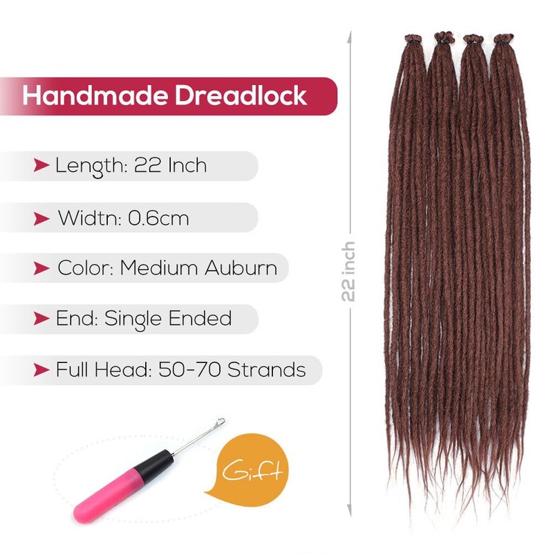 22" Thin 0.6cm Dreadlocks Extensions Synthetic Crochet Braided Hair Backcombed Dreads Extensions