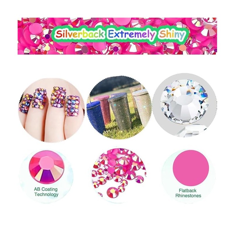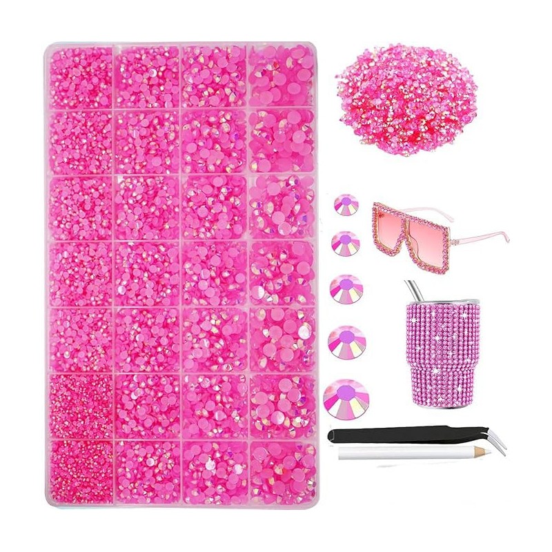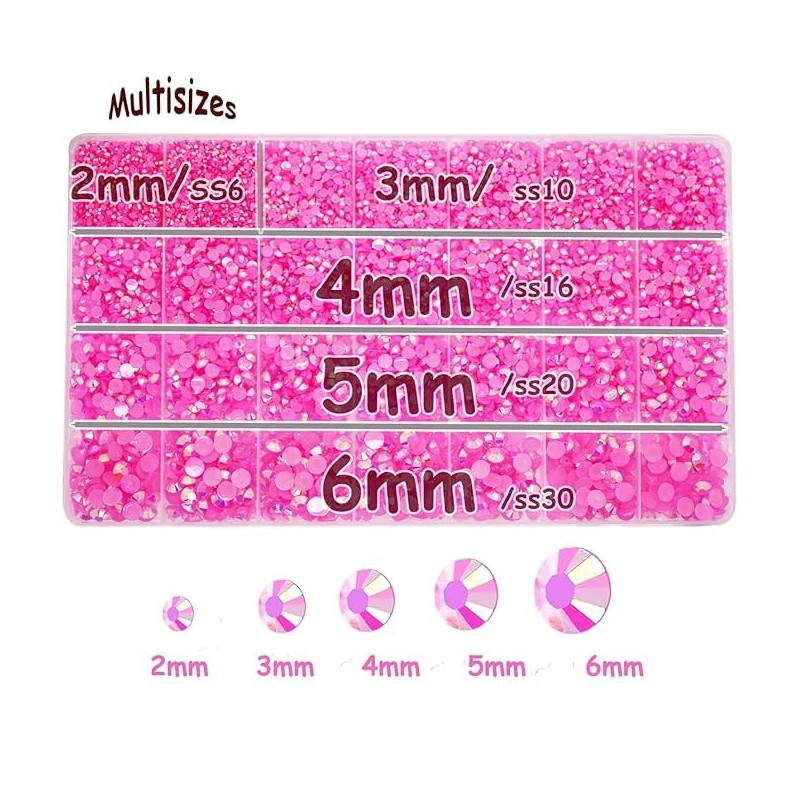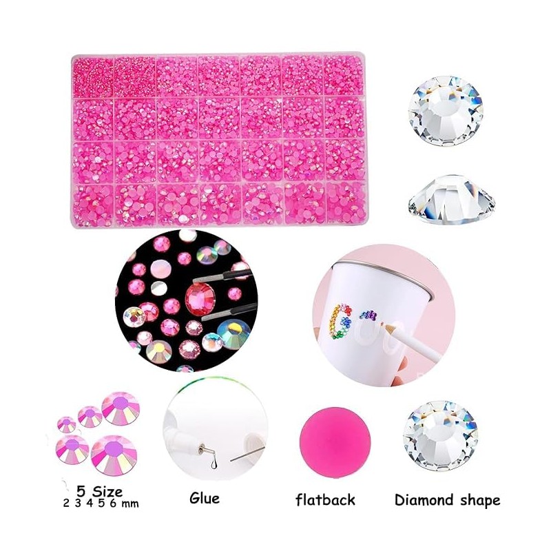 22000pcs Resin Rhinestones for Making, Pink AB Mixed 2 mm 3 mm 4 mm 5 mm 6 mm Flatback Roud Beads, Non-Hotfix SS6 SS10 SS12 SS16 SS20 Gemstones with for DIY Crafting