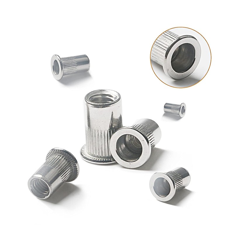 - 3.👍Unique design: the flat head rivet nut has an open end, small flange, round hole, internal thread and partial non-slip surface, which has a good fixing function.