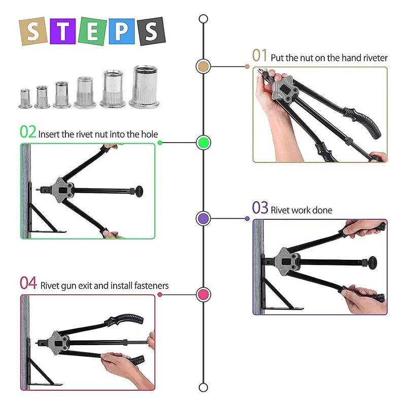1. Rivet nuts for play/installation tools: manual/pneumatic available. Perfect for professional and home use.