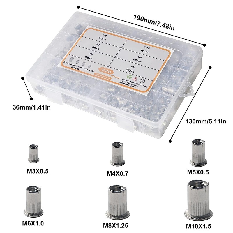 220pcs Stainless Steel Thread Insert Blind Nut Rivet Nut M3 M4 M5 M6 M8 M10 Repair Tool