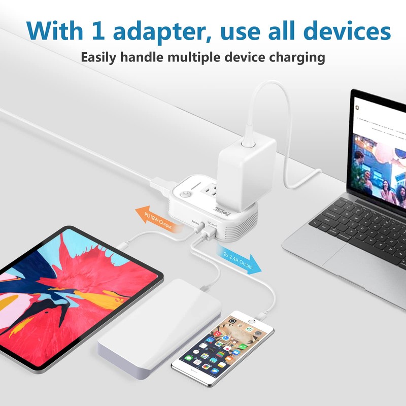 - 【Multiple Charges Simultaneously】 Travel power strip equips 2 AC outlets and 3 USB charging ports with 18W PD Type-C Port, which support the newest Usb-C phone charging. This travel charger for multiple devices can help you charge multiple devices at the same time. A simple solution to all charging problems in foreign countries.