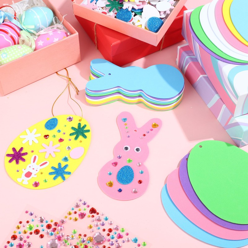 - Easter foam stickers set: the Easter foam crafts set includes 12pcs foam Easter eggs, 12pcs foam bunnies, 150pcs foam Easter stickers, 24pcs eyes stickers, 24pcs gold ribbons, and 2 sheets of rhinestone stickers, sufficient quantity to meet your various DIY crafting needs for your Easter party.