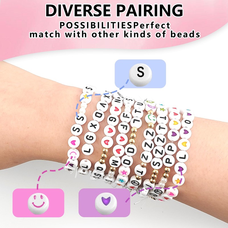 - 【 Spread Goodwill with Short Words】:These letter beads are perfect for making friendship bracelets. String song titles, lyrics, inspirational messages, blessings, and other words to share and exchange with others, passing on goodwill. Each alphabet beads kit includes love and peace beads.