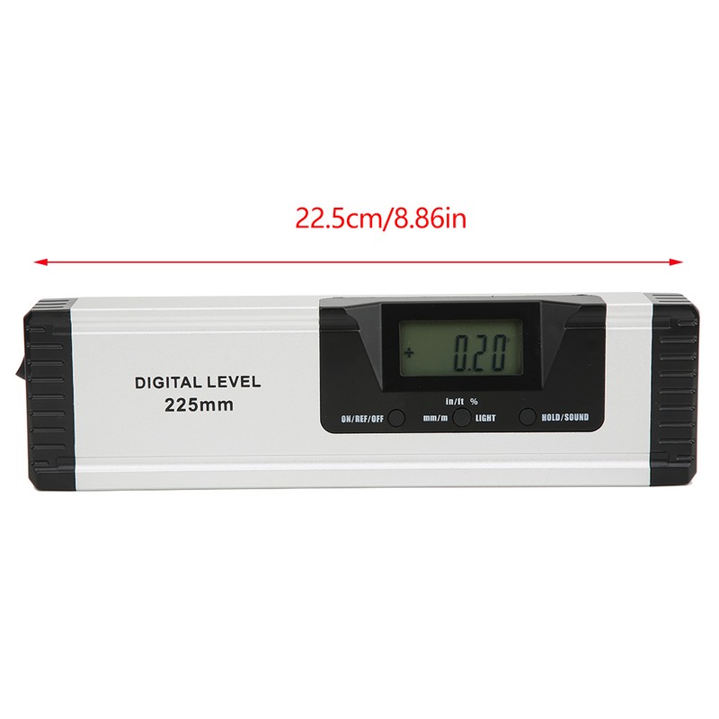 225mm Digital Backlight Red Laser Level Ruler Aluminum Alloy Magnetic Spirit Level