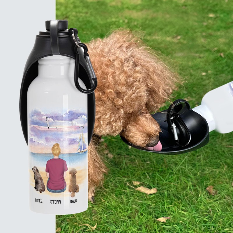 22Feels Personalisierte Hundetrinkflasche Gassi Frauen Geschenk Frauchen Hunde Wasserspender Unterwegs to Go Trinknapf Leckdicht Tragbare Hundewasserschlüssel Reisen Wandern (Edelstahl, Silikon)