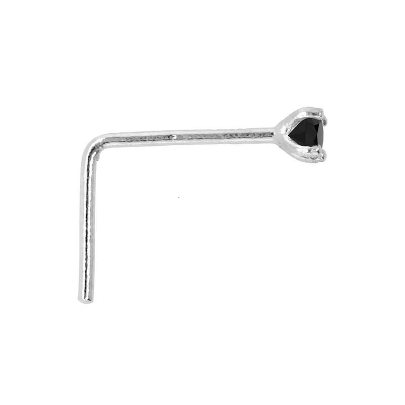 22G Solid 14Kt Gold L-Shape Nose Stud with real Black Diamond Gemstone, 14kt Yellow Gold or 14kt White Gold Prong Setting - April Birthstone Nose Ring, Metal, black-diamond