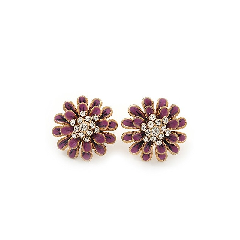 22mm D/Purple Enamel Diamante Layered Stud Earrings In Gold Tone