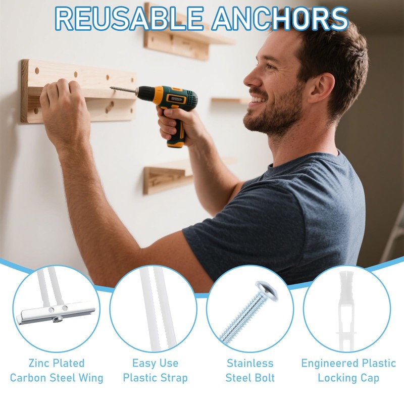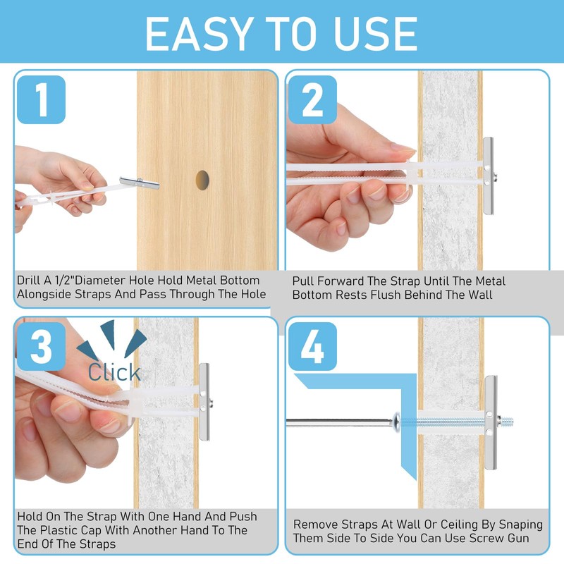 - 【Versatile Anchors for TV Mounts and More】Our drywall anchors are perfect for mounting flat-screen TVs, photo frames, lighting fixtures, and more. They accommodate materials ranging from 3/8” to 3-5/8” thick, providing a secure and reliable hold for all your mounting needs. Whether you're setting up a home theater or displaying artwork, these anchors ensure your items stay firmly in place, offering peace of mind and versatility in application.
