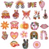 22Pcs Hippie Iron on Patches Groovy Boho Sew on Embroidered Applique Patches Embroidery Repair Decoractive Patches DIY Crafts Sewing Patches Decorations for Clothes Hats Jackets Jeans Backpacks