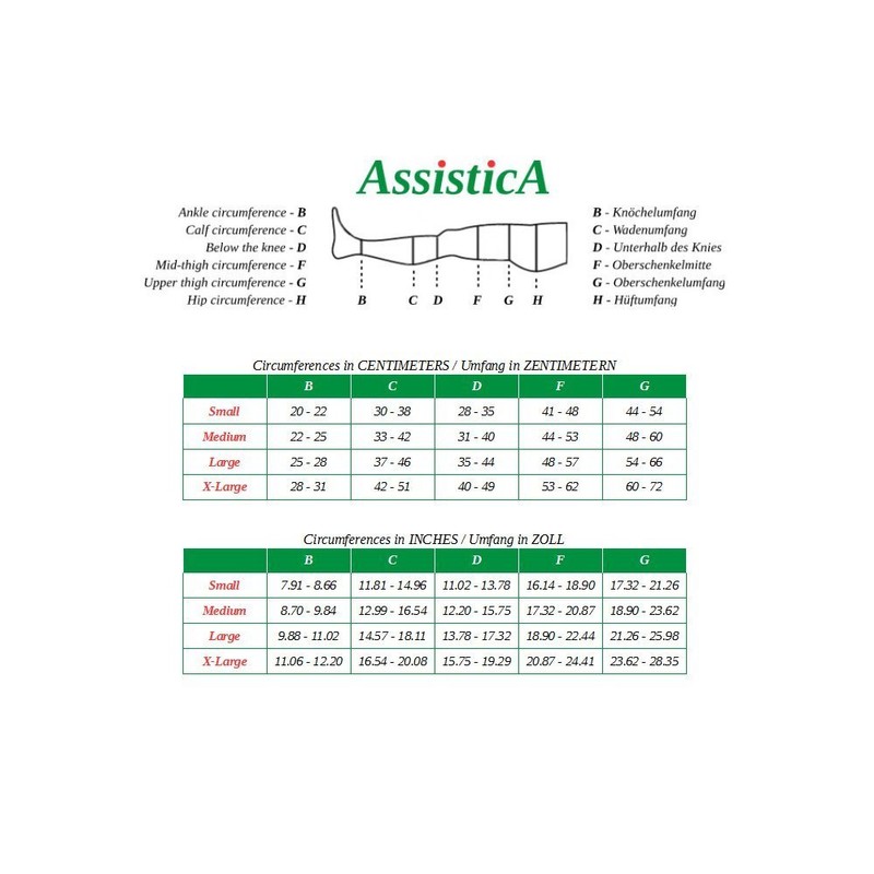 - Brand: Assistica. Compression class: 23-32 mmHg (Class II, KKL 2) Type: to the thigh (AG), closed toe. Colour: beige, black. Gender: men, women. Quantity: 1 pair. Fabric: 80% polyamide, 20% Lycra.