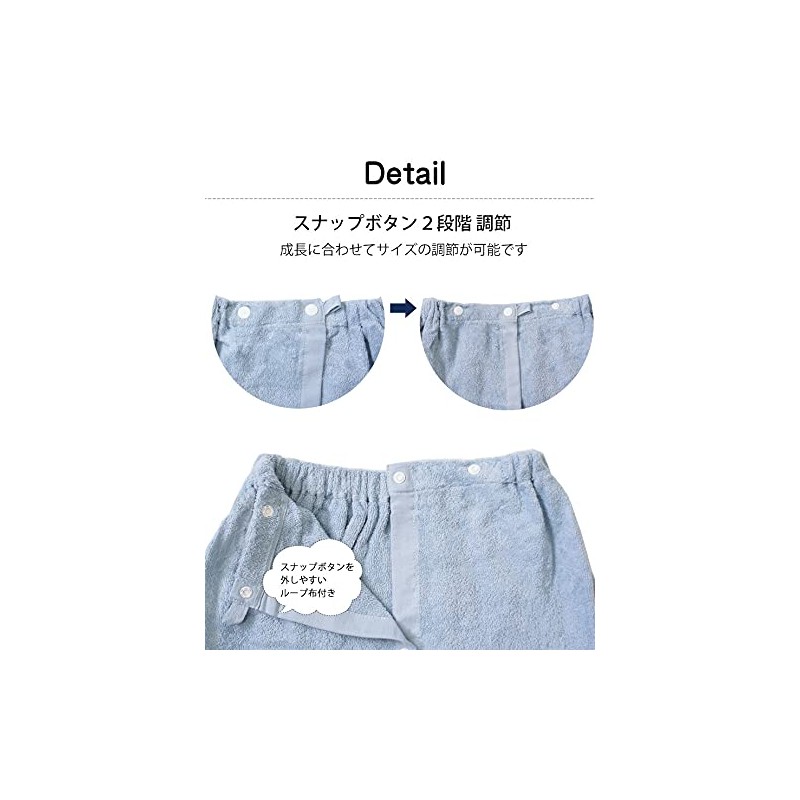 • Elastic + snap button for size adjustment