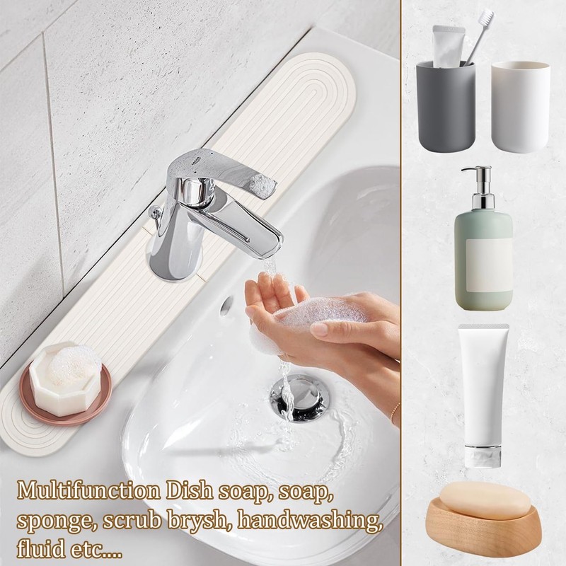 - MULTI-PURPOSE & STYLISH: More than just a faucet mat, this sleek stone tray doubles as an organizer for toothbrushes, soap, cups, or hand sanitizer. Ideal for kitchens, bathrooms, RVs, cafés, and more—blending seamlessly with modern or minimalist décor