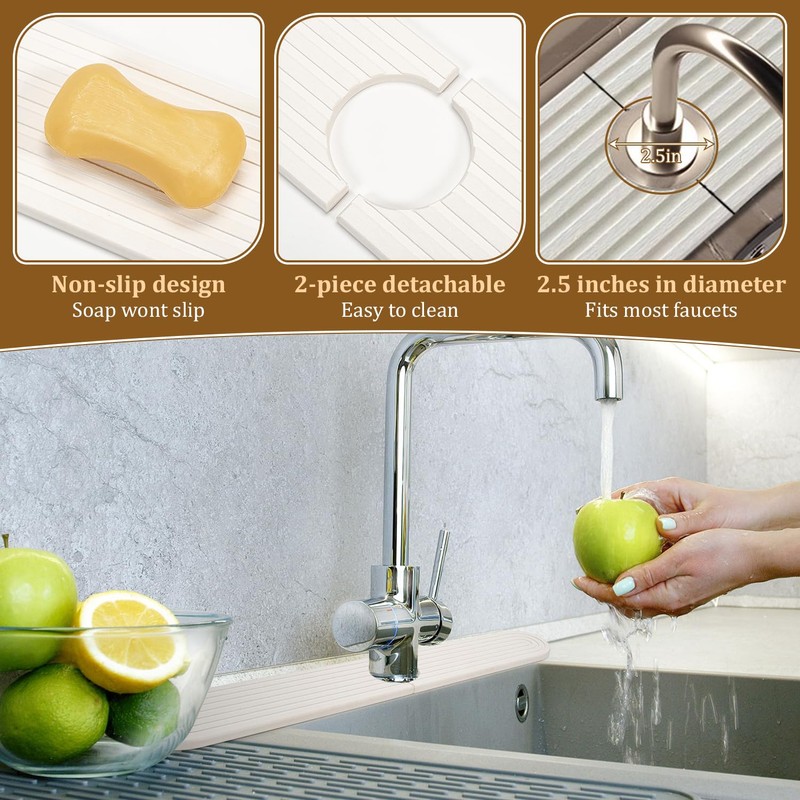 - SUPER ABSORBENT & FAST DRYING: Made from natural diatomaceous earth, our faucet mat for kitchen sink quickly soaks up water and evaporates moisture in seconds. The built-in grooved surface channels water efficiently, preventing pooling and moisture buildup
