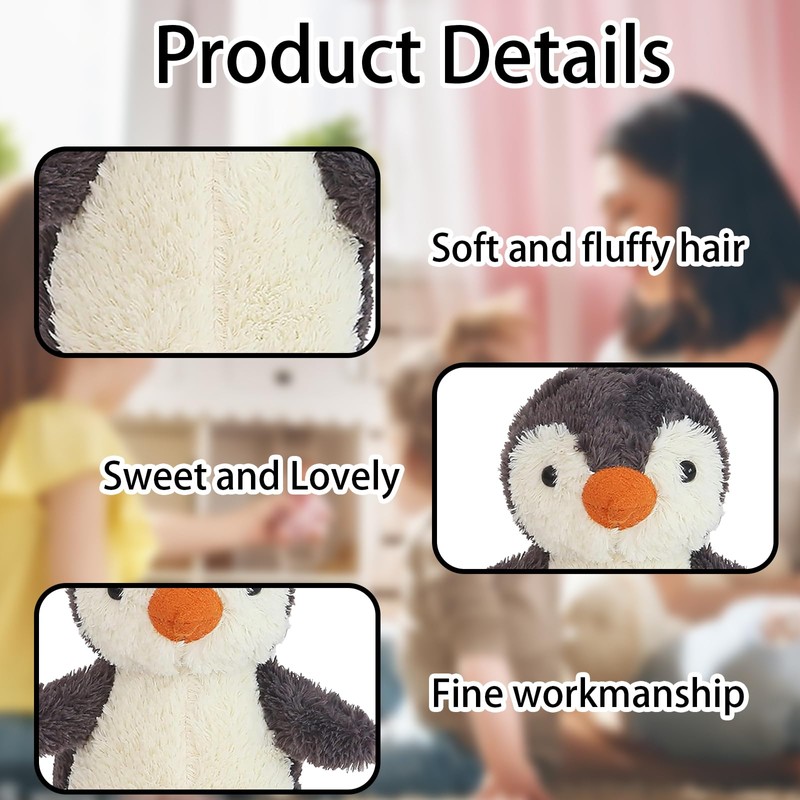 - Soft and cute design: Made of high-quality materials, this penguin toy offers a soft and cute experience; Its round and cute body, combined with its playful expression, makes it a favorite among children