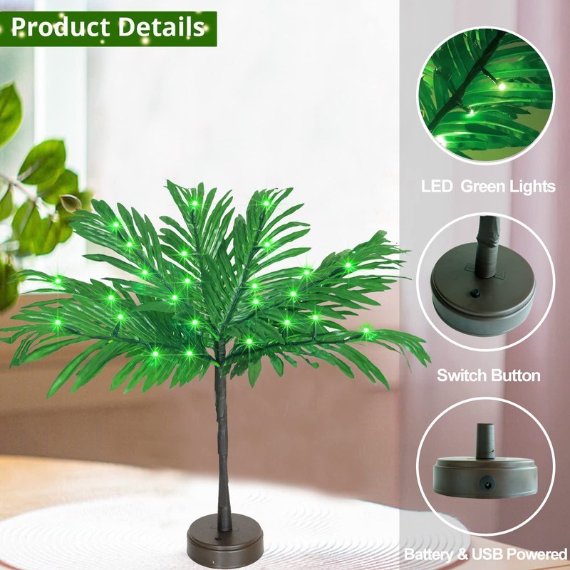 - Lighted Palm Tree Decor: 23 inch cute artificial palm tree designed with green LED lights can emit natural green light, bring you the Hawaiian style and light up your tropical luau party
