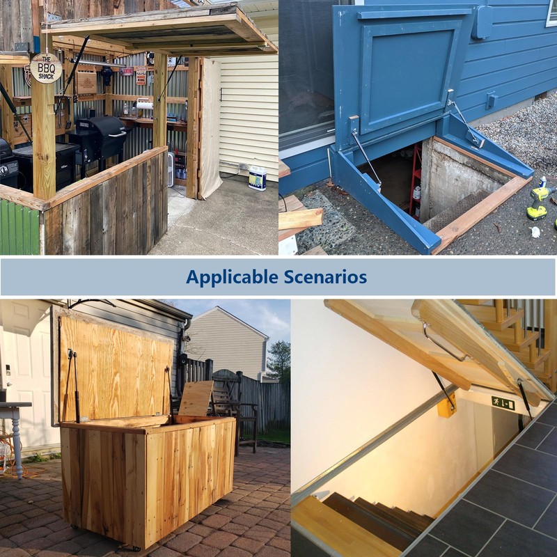 - 【Application Scenarios】23 inch gas struts designed for rv bed, camper bed, storage cover, tool box door, toy lid, basement door, boat hatch, tv cabinet, rv door, chicken coop, shed window, custom windows.
