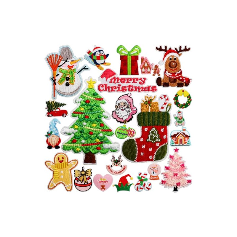 23 PCS Christmas Patches Christmas Iron On Patches for Clothing Decorative Patches Embroidered Sew On Cartoon Anime DIY Patches Applique Patch Repair