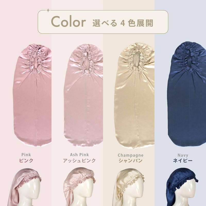 [23 Years Model] Nightcap for Long Hair, 100% Silk, 19 Momme, Newest 3D Structure, No-Slip Nightcap Tube Shape (Navy)