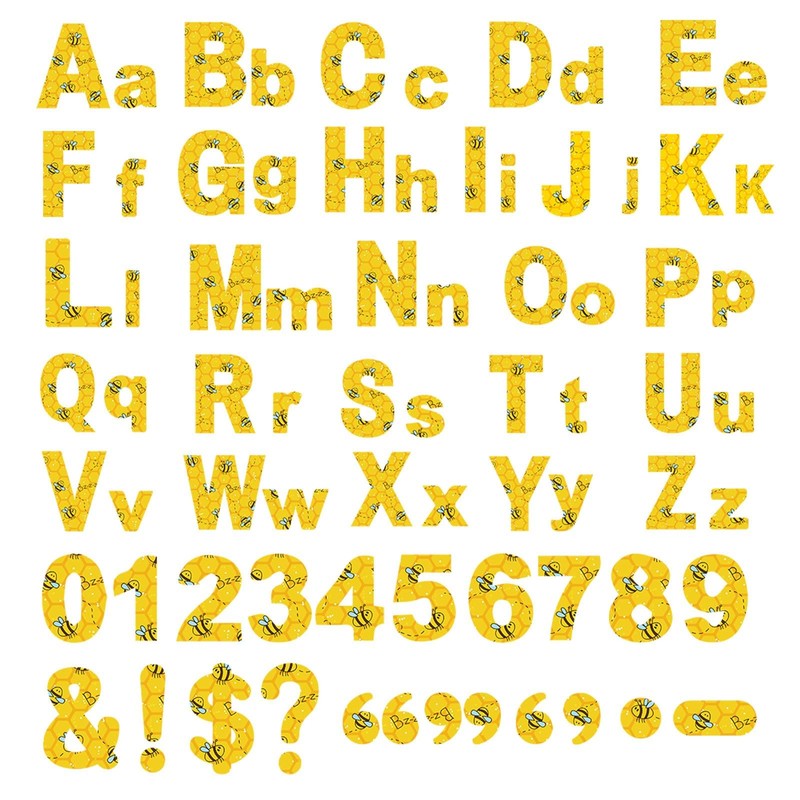 our bee themed cutout letters and number accents have words and patterns that are relevant to your child's learning, and can help your child identify letters, colors, punctuation and numbers, and even sort and group them, such as for dictation games or counting games.