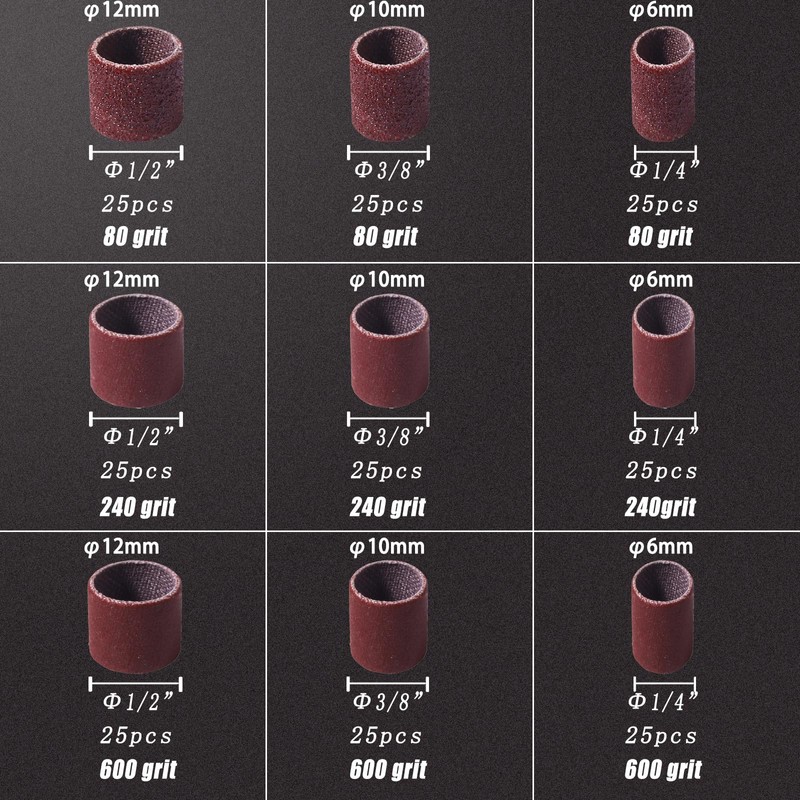- Coarse to Fine Sanding Series: This sanding drum set includes three types of sanding drums - 80grit, 240grit, and 600grit - that are perfect for completing the entire process from rough machining to fine polishing.