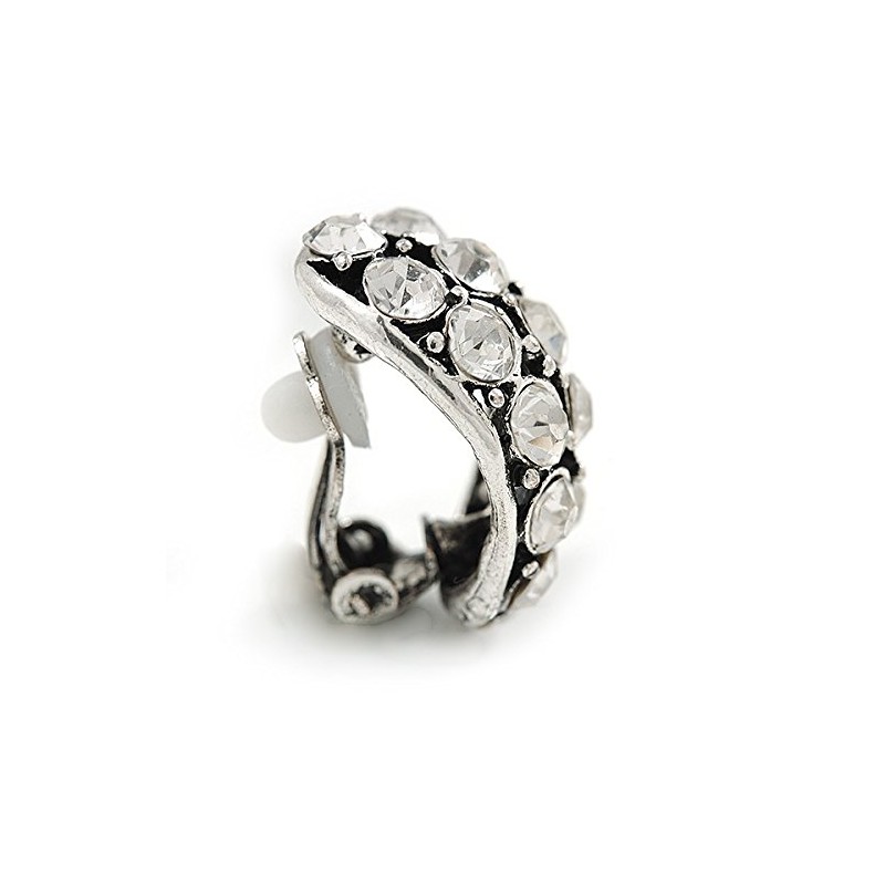 23mm Tall/C-Shape Clear Crystal Clip On Earrings In Silver Tone