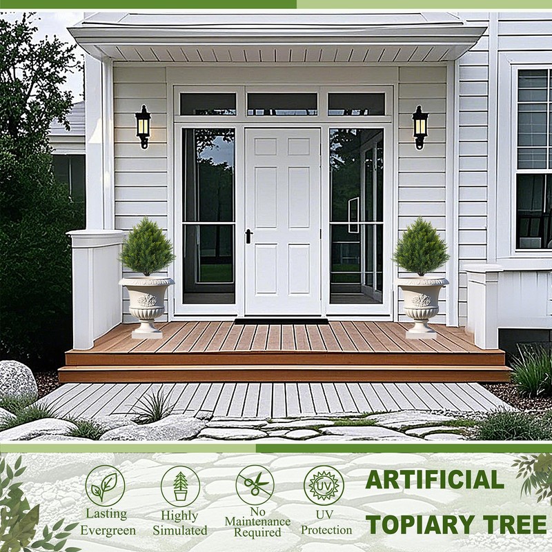 24.8" Artificial Cedar Topiary Ball Trees with Ground Spike, Set of 2 Faux Cypress Plants UV Resistant Artificial Pine Shrubs Fake Bushes for Outdoor Indoor Front Porch Garden