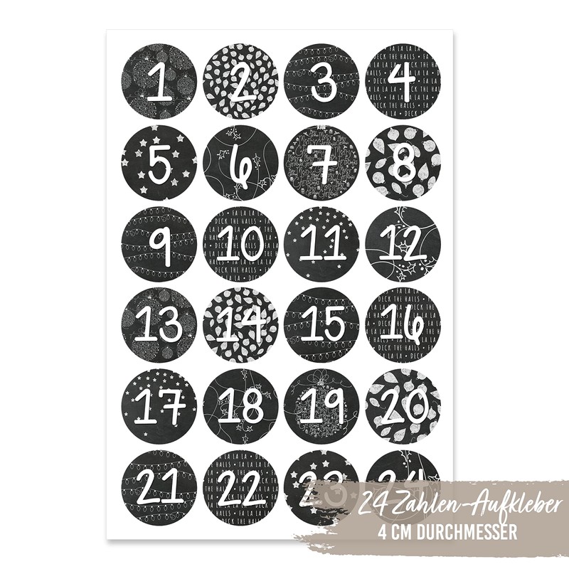 DIN A4 Sheets with 24 labels for your personal Advent Calendar