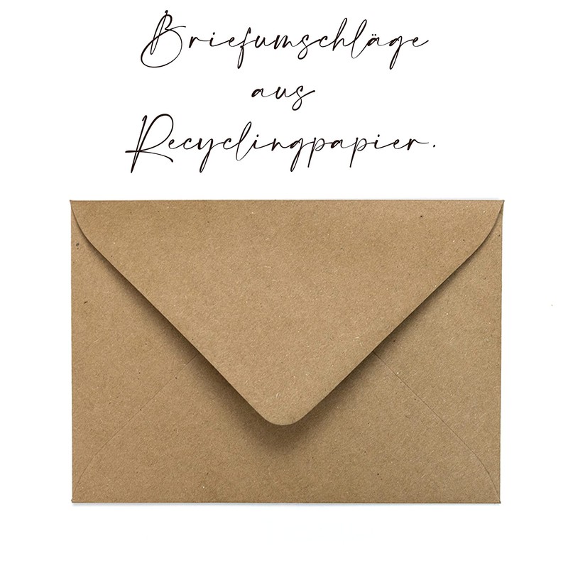 - The Christmas greeting cards are made of particularly strong kraft paper and are nice and heavy in the hand. They are 14.8 cm high and 10.5 cm wide (when folded).