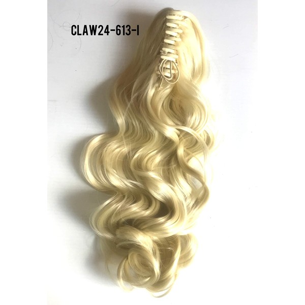 24" Claw Clip in Wavy Ponytail Extensions Light Bleach Platinum Blonde #613 Heat Friendly Fire Resistence Fiber …