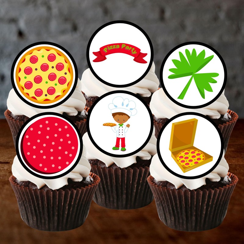 24 essbare Cupcake-Topper mit Pizza-Party-Thema, stehend, Kuchen-Dekoration