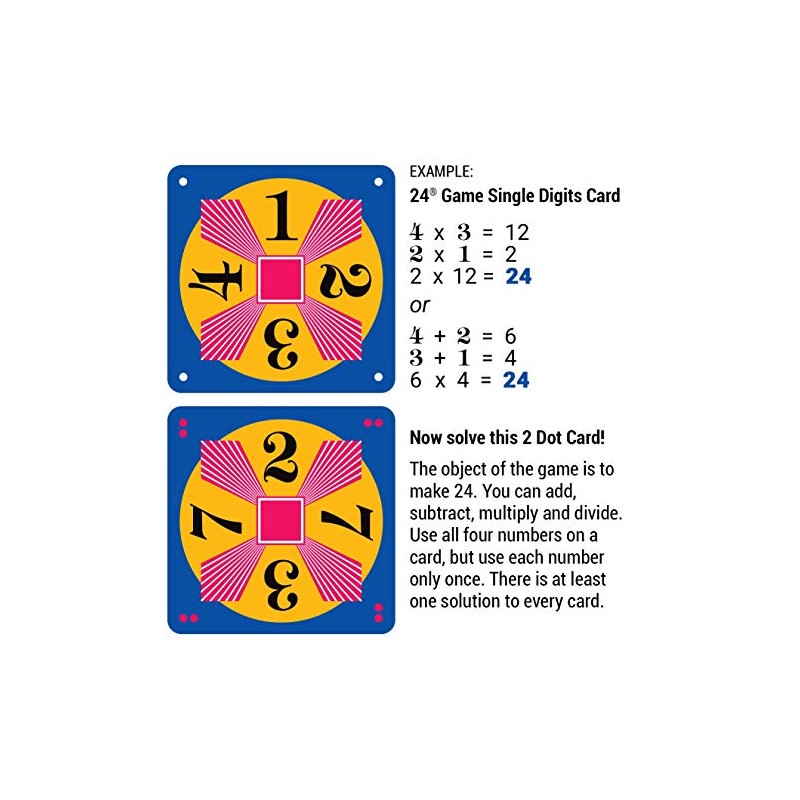 The goal in each case is to use all 4 numbers in the problem each exactly once to obtain 24 or -24 by adding, subtracting, multiplying, and/or dividing.