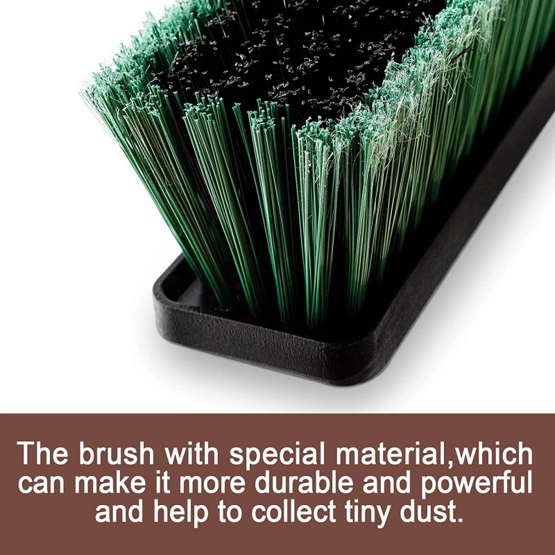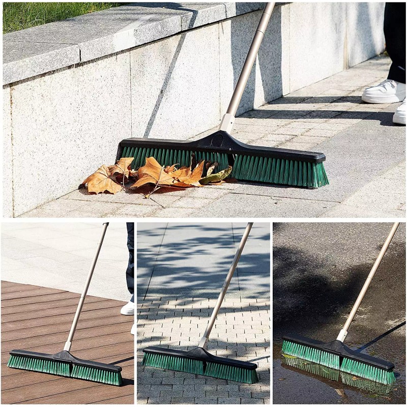 - 【2-Section Interlocking Broom Head】The 24 inches wide Double-layer Bristles broom could be used in both dry and wet floor condition, The 2-section interlocking convenient for storage the brush head, has soft outer green bristles that sweep up catch small fine dirt particles like dust, wooden chips, hair, while sturdy inner black bristles sweep away large debris or difficult to remove stains.