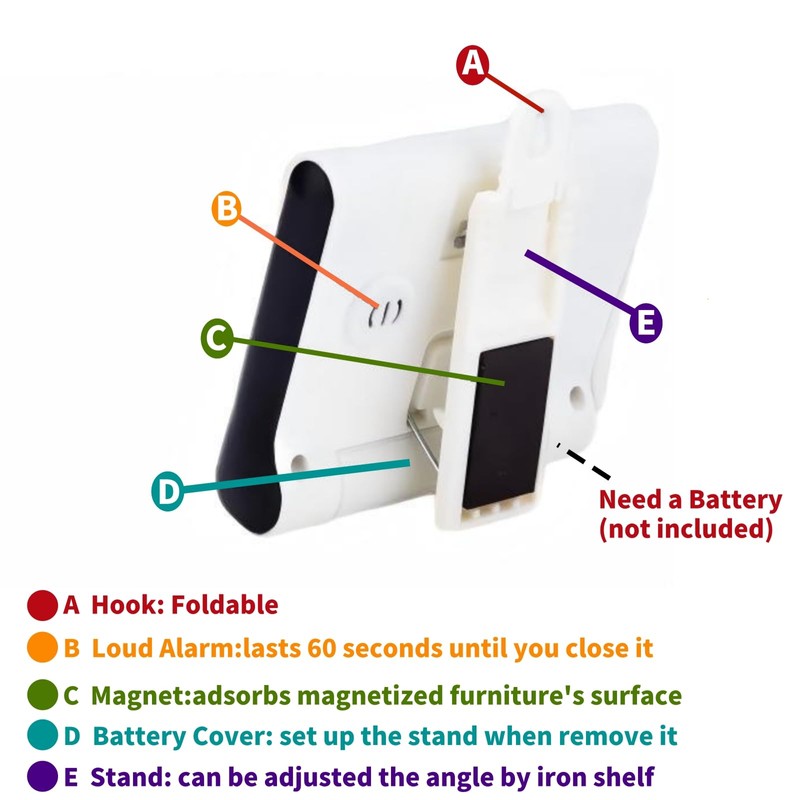 2. Replace the AAA battery when the display dims or the alarm becomes less clear (battery not included).