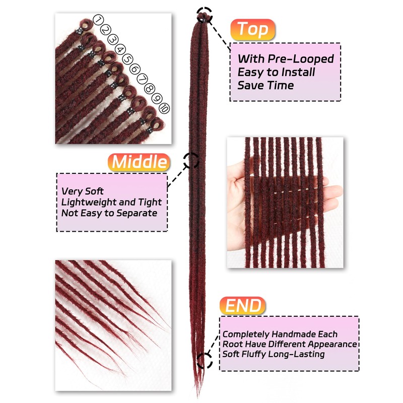 • 1.Hair Style:dreadlock extensions single ended crocheted dreadlock extensions are handmade from synthetic Henlon hair in the best quality.