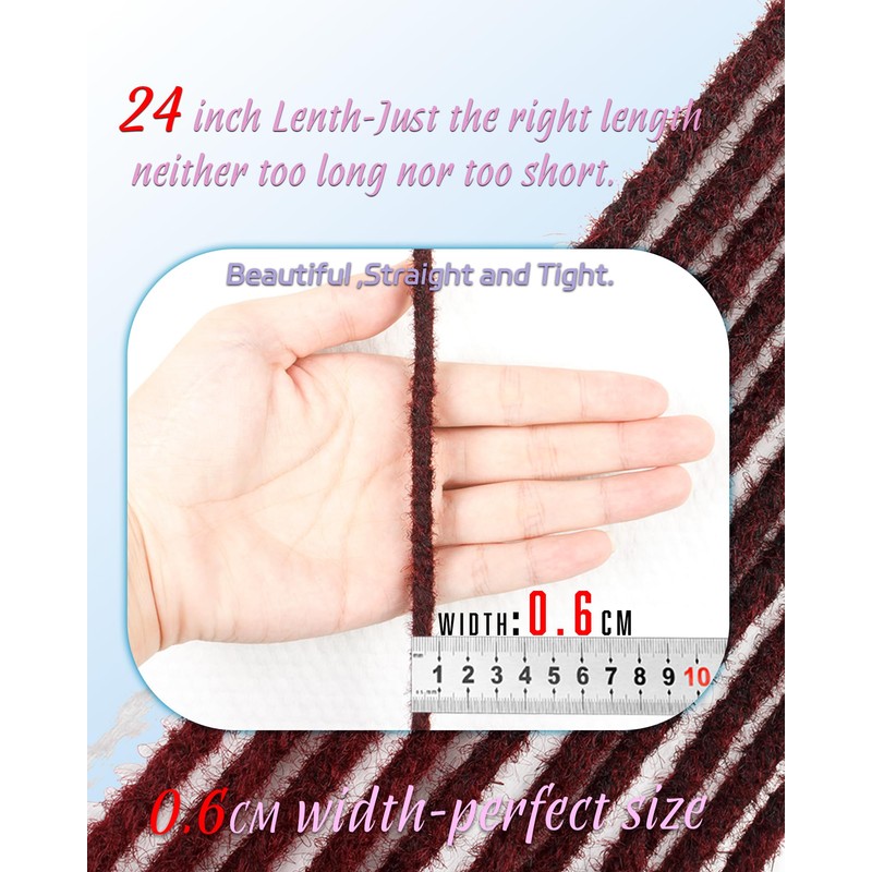 24 Inch Dreadlock Extensions 0.6 cm Width 20 Strands-Ombre Burgundy Crochet H...