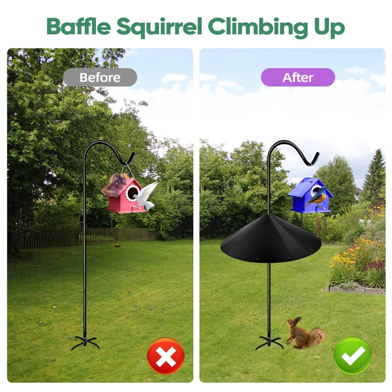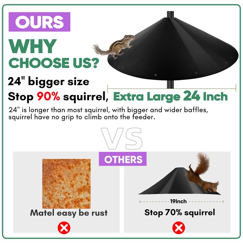 24 Inch Large Squirrel Baffle for Bird Feeder Pole, Squirrel Proof Bird Feeders Baffle with Metal Frame, Outside Squirrel Stopper & Bird House Guard for Shepherd’s Hook, Black, 1 Pack