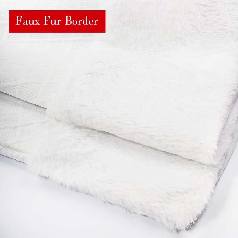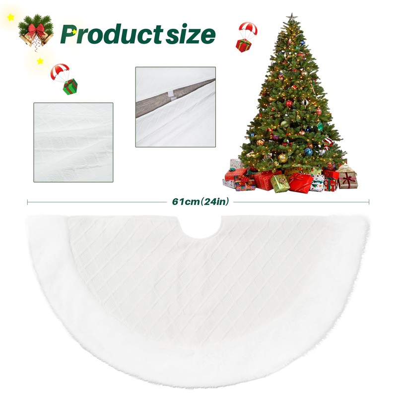 24 Inch Mini Christmas Tree Skirt, White Tree Skirt with Faux Fur Edge, Luxury Thick Rustic Christmas Tree Decorations Xmas Tree Rug for Tabletop Tree