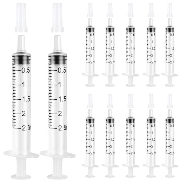 24 Pack 2.5ml Plastic Syringe with Cap, Sterile Syringe Individually Sealed for Labs, Measuring Liquids, Feed Pets, Oil or Glue Applicator