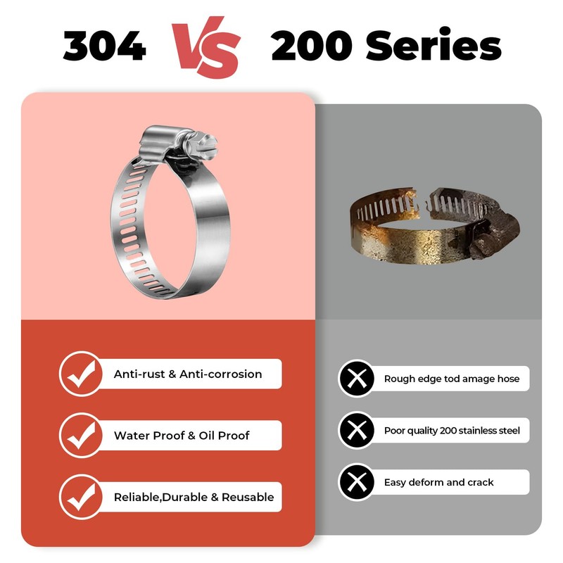 - Durable Material: Our worm gear hose clamps are made of high-quality 304 stainless steel, ensuring long-lasting durability and resistance to corrosion. This material also provides strength and reliability for securing various hoses and pipes.