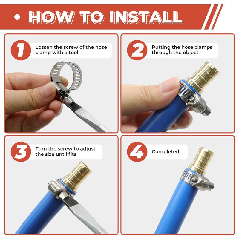 - Easy Installation: Designed with a worm gear mechanism, these clamps are easy to install and remove without the need for any specialized tools. Simply adjust the clamp to the desired size and tighten with a screwdriver or wrench.